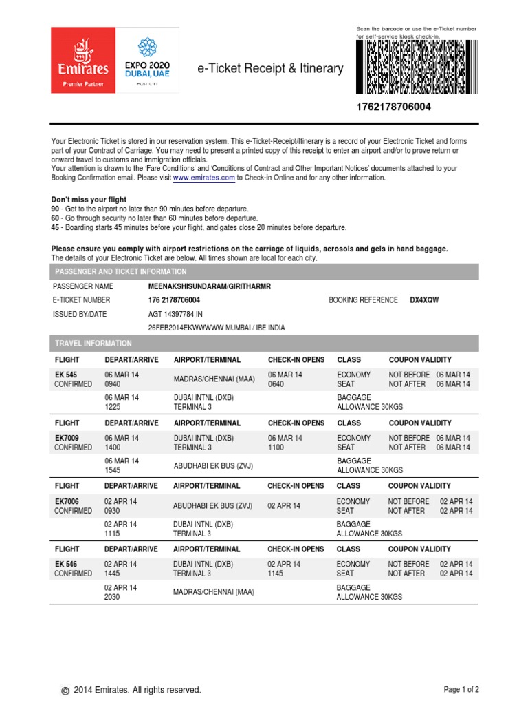 Emirates E Ticket 1 Aviation Service Industries