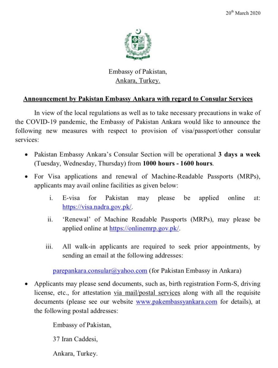 Pakistan In Turkey On Twitter Announcement With Regard To Use Of Online Visa Passport Facilities And Other Consular Services Coronavirusoutbreak Covid2019 Https T Co Ltnznu7ivr